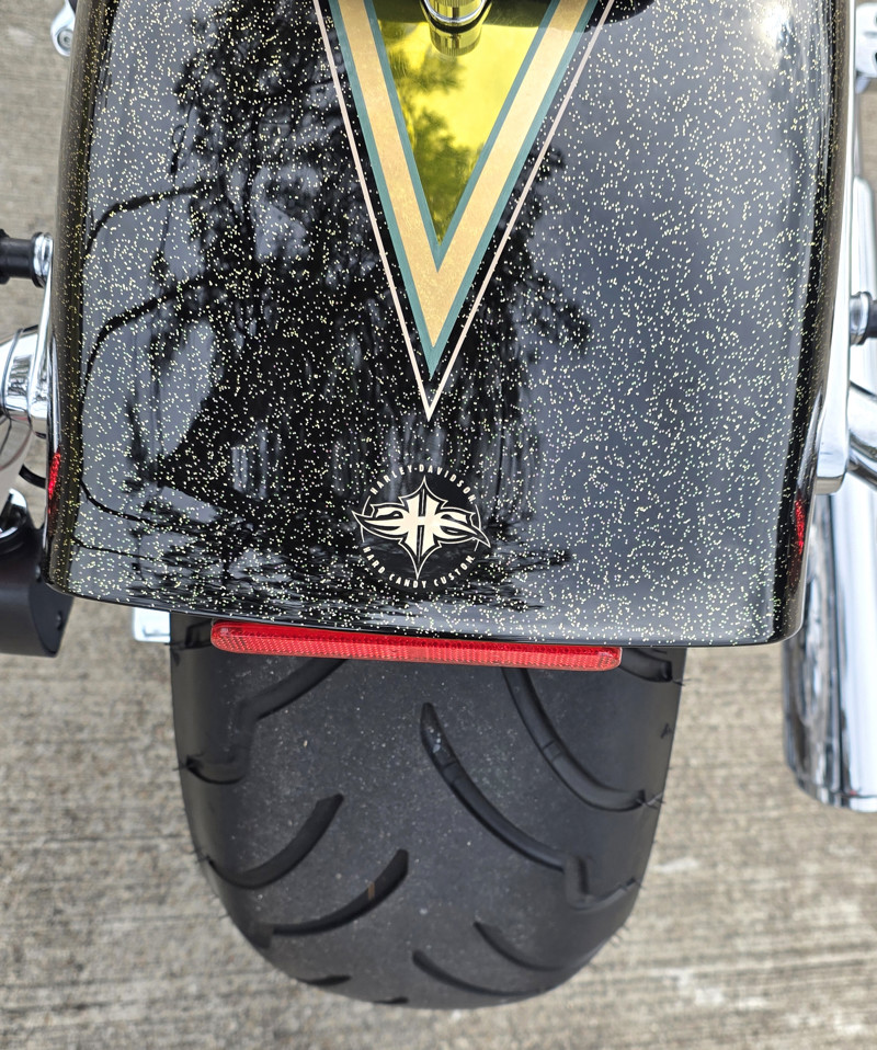 The leather seat and pillion carry an embossed horn-back gator hide accent pattern in black or brown leather. Harley-Davidson® shaped both pieces to deliver good lower-back support for the rider on long hauls. What’s more, you remove the pillion without tools to fully expose the custom paint on the rear fender — instantly transforming the look of the entire rear end.