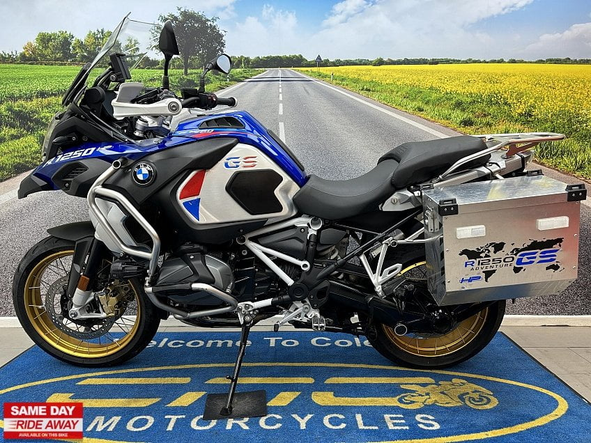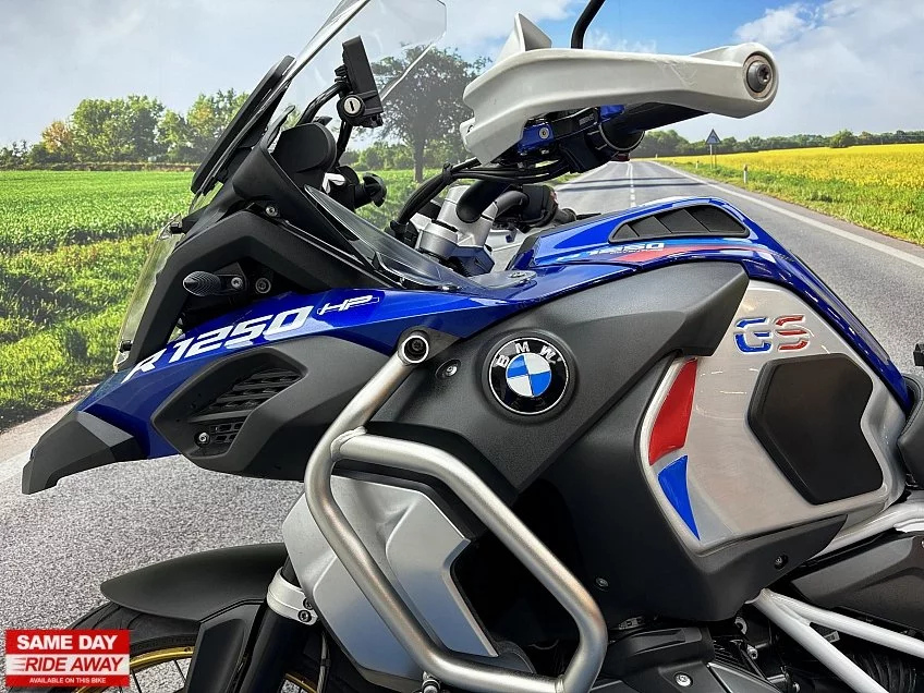 Our 2018 (68) BMW R1250 GS Adventure Rallye TE looks great finished in blue.