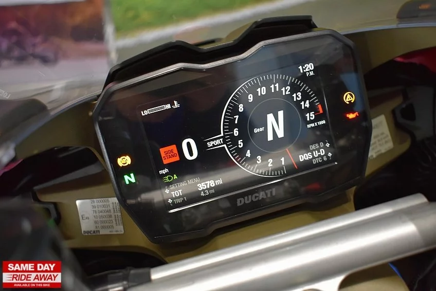The V4 S boasts state-of-the-art electronics, including Ducati’s advanced riding modes, traction control, and quick shift system, delivering unprecedented control and precision. Built for the track and refined for the road, the Panigale V4 S features a lightweight chassis and Öhlin’s suspension, providing unrivalled handling and stability in every corner.