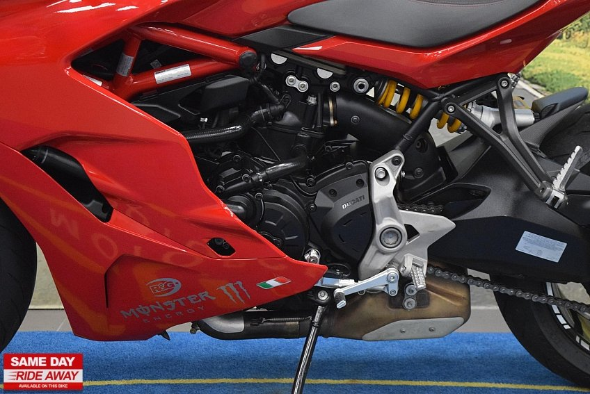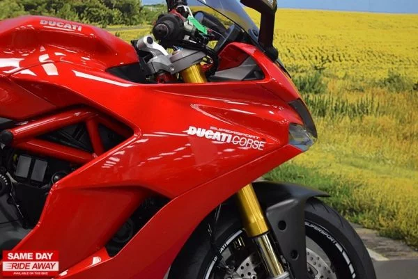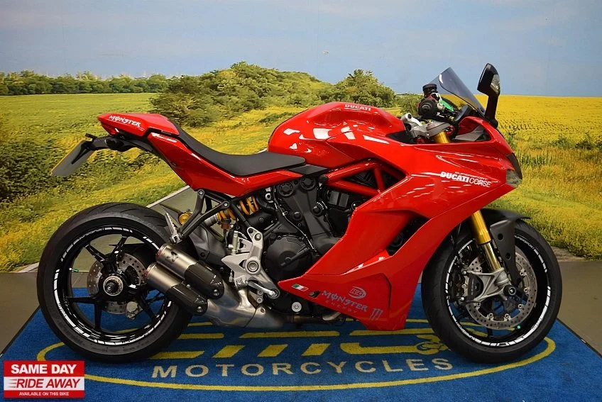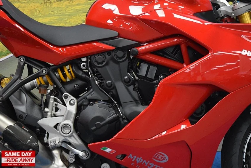 The Supersport S boasts a sleek, aerodynamic design that not only turns heads but also enhances stability at high speeds. Its comfortable riding position, coupled with adjustable suspension and handlebars, ensures an enjoyable journey for both short bursts and long-distance adventures.