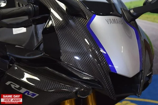The advanced electronics suite, including a Communication Control Unit (CCU) and Yamaha’s exclusive electronic racing suspension (ERS), elevates the R1M to unparalleled heights of precision and control. Built for the discerning rider, the R1M features carbon fiber bodywork and a sleek, aerodynamic design that commands attention. The state-of-the-art TFT display provides real-time data, ensuring you stay connected with your machine and the road.